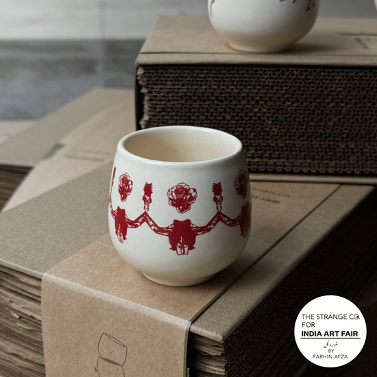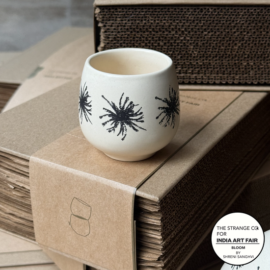 This collaboration with India Art Fair is special in so many ways. From brainstorming the shape of the ware, taking inspiration from the soft, natural form of a tulip, to spending time with the artists whose work now lives on our espresso cups, the entire process felt deeply personal. Watching art move from an artist’s world into an everyday object was incredibly fulfilling. Every step, from early ideas and sketches to final making, has been exciting and full of intention. It truly feels like a full-circle moment, where art, design, and craft come together to create something meaningful and meant to be lived with.
